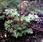 I feel like such a wuss. A couple weeks of nice weather and suddenly 55 degrees feels cold again. The plants don’t mind. There’s bleeding heart coming up, even though I moved them. There’s tulips holding their colors in reserve. There’s hosta, too.