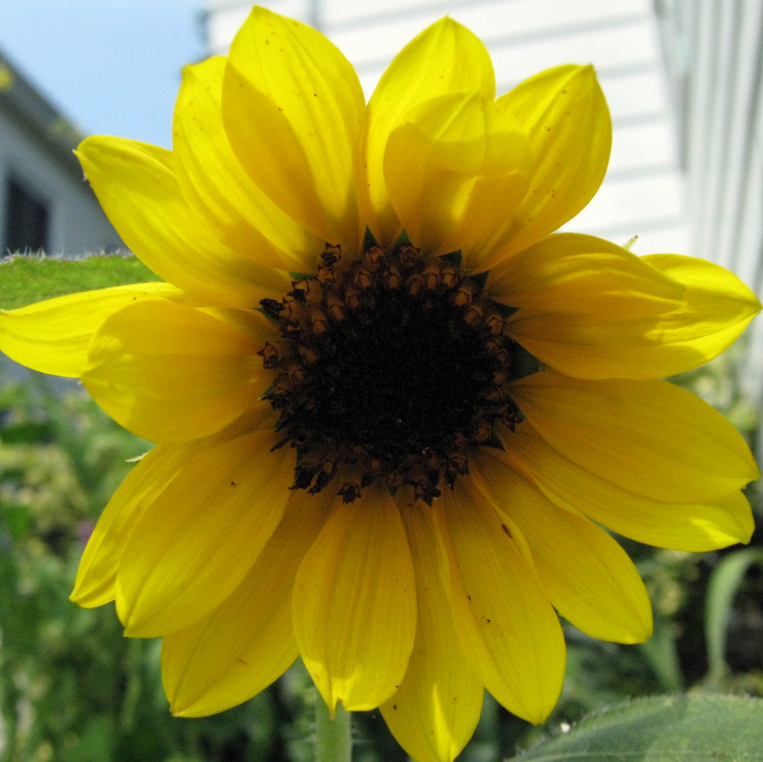 You never know what’s going to turn up. This sunflower is one of at least three that decided to plant themselves in my yard. And none of them are the sprouts in the compost tub.