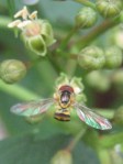There’s honeybees this year and bumblebees looking absurdly huge on the tiny flowers. There’s my friends the syrphid flies, Toxomerus marginatus.