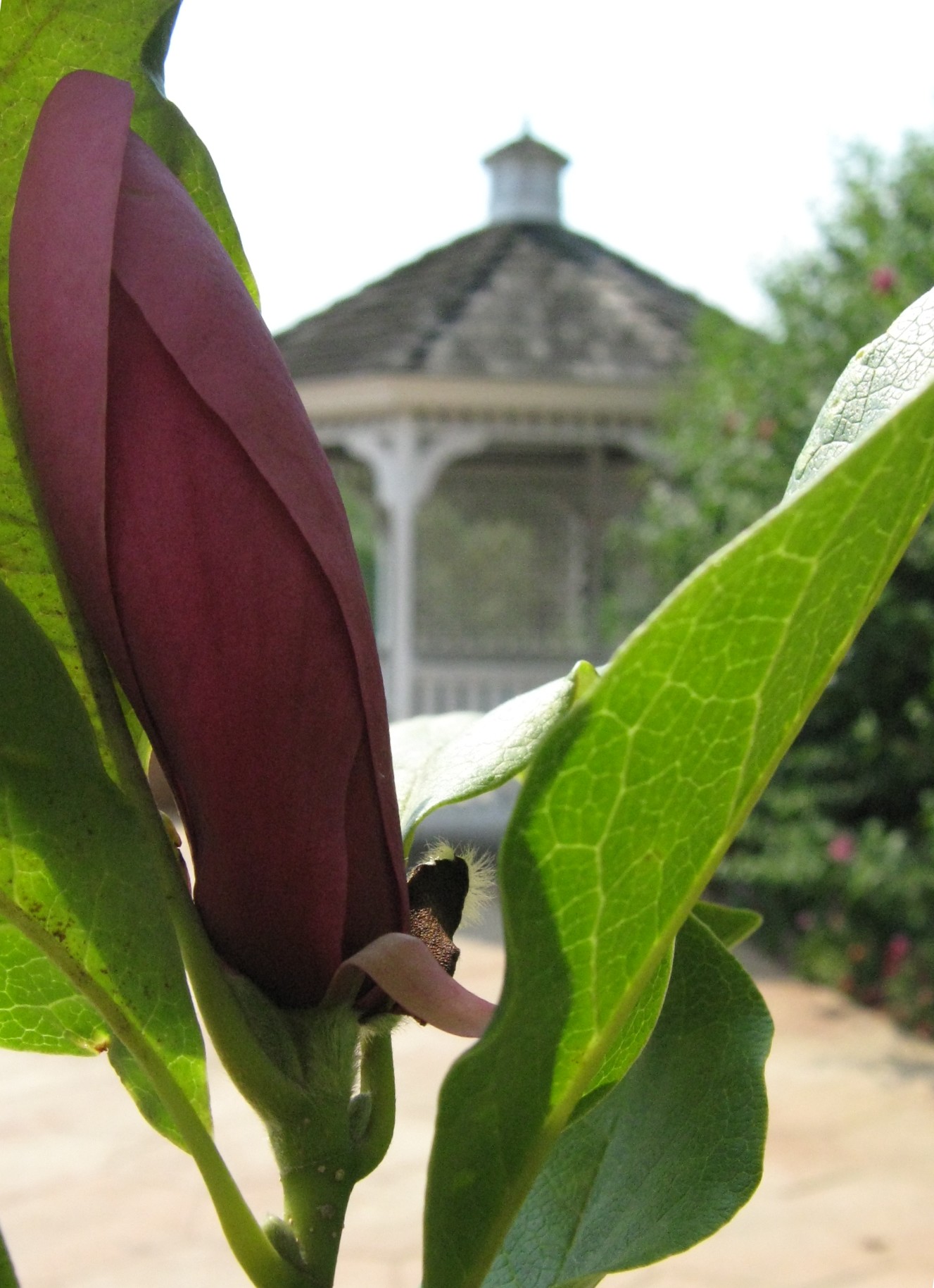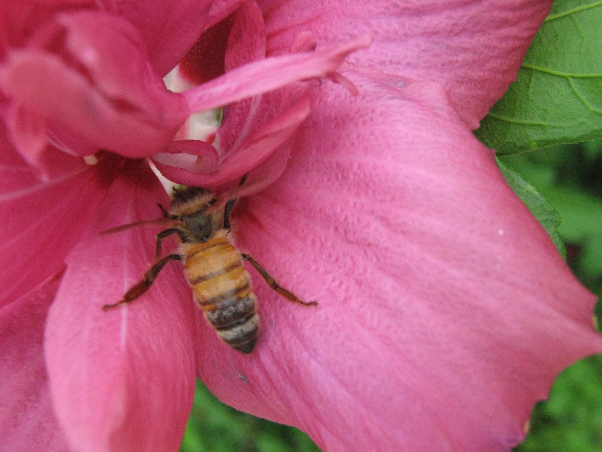 Out back there’s some flowering shrubs with honeybees buried in the flowers. You can sit in the gazebo. But if you go a little further, there’s uncultivated spaces with a smattering of wildflowers.