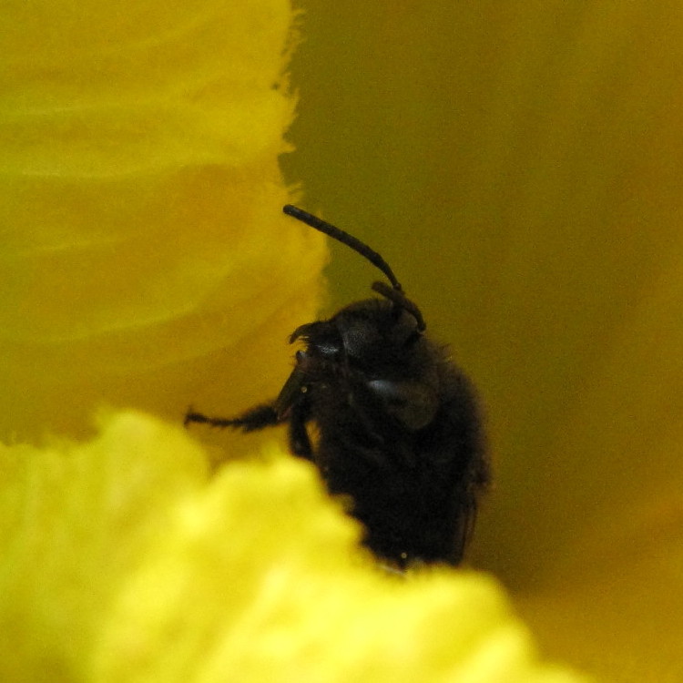 The next thing you need to know is to look for bees inside. There are squash bees that specialize in pollinating squash. The squash bees come by in the early morning, and by noon, they’ll curl up inside the closing blossoms and go to sleep. I’ve also found honeybees and black Melissodes bees inside my squash blossoms.