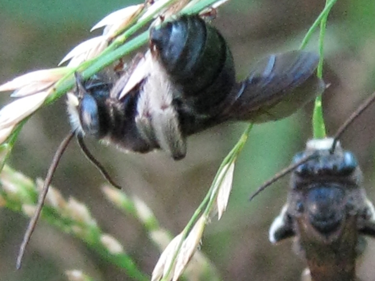 I’ve been wondering if bees sleep since I saw all these black bees zooming about in the early evening. They seemed to be chasing each other. Then they clustered on a few stalks of grass, jostling and fighting for the good spots, until they finally settled down.