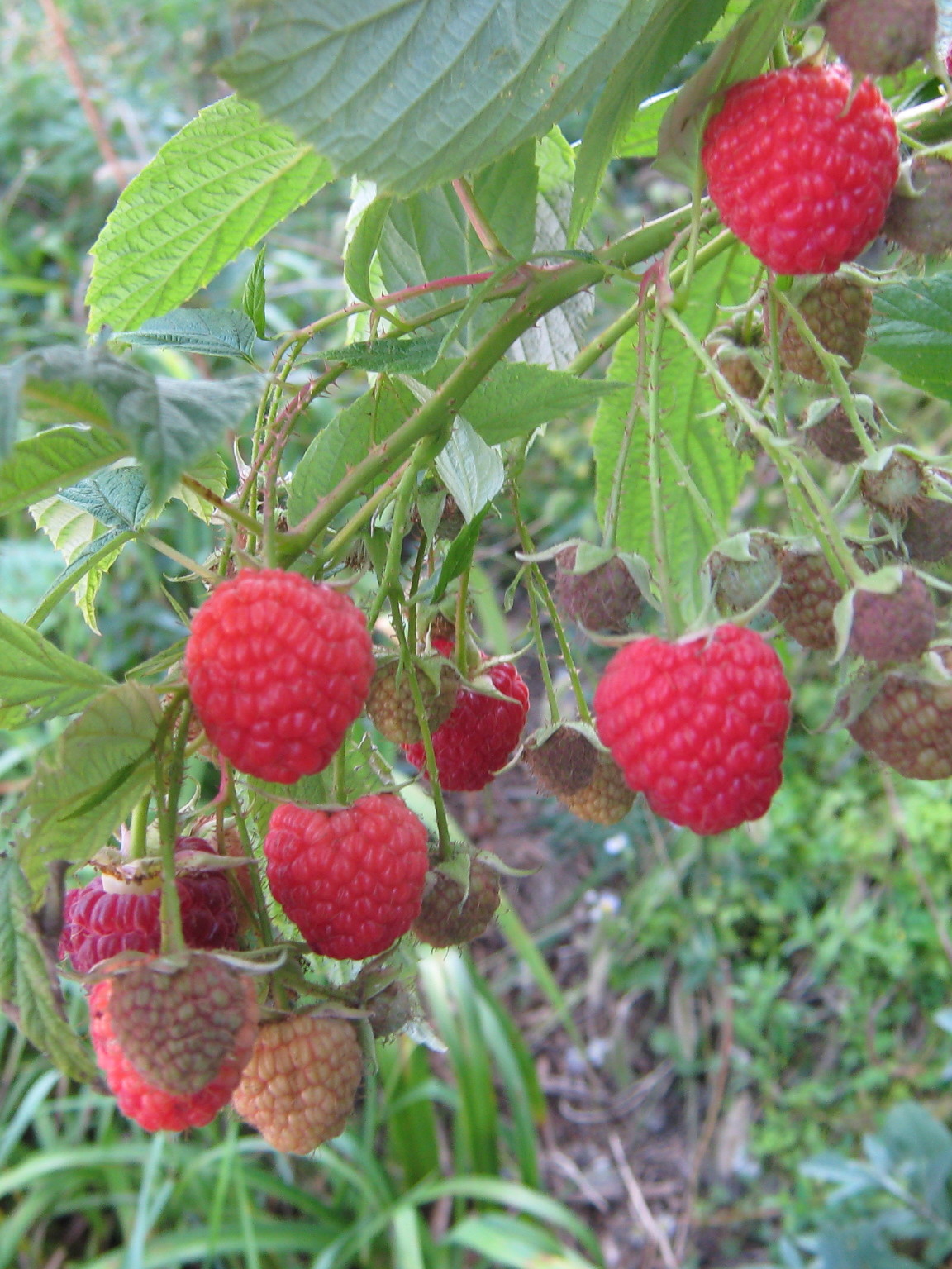 The fall-bearing raspberries I planted this spring are actually bearing fruit already. In fall. Lots of them. Nom, nom, nom.