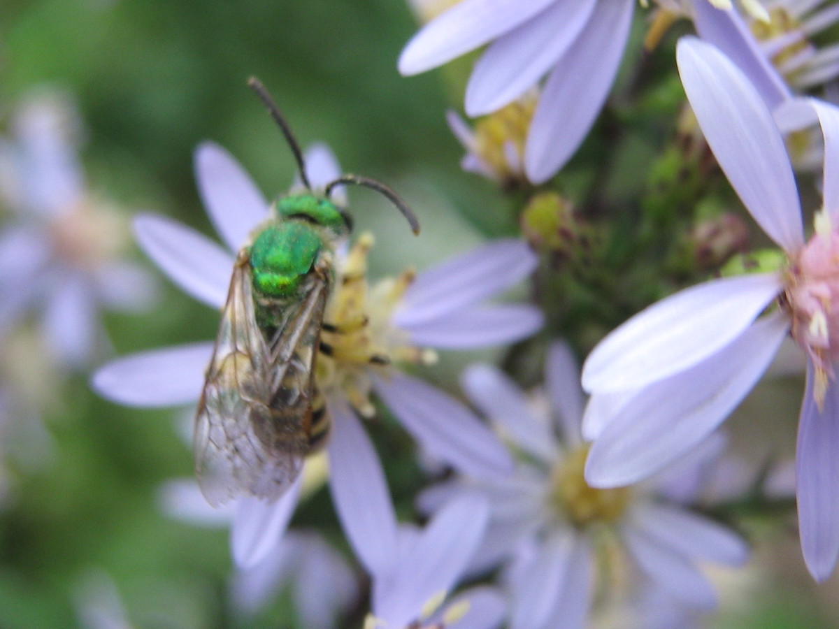 More often than not, I’ve found this trinity of bees: honeybees, bumblebees, and shiny green sweat bees, Agapostemon virescens. Sure, there are other, seasonal bees, but these gals really hang in there. I wonder how much longer?