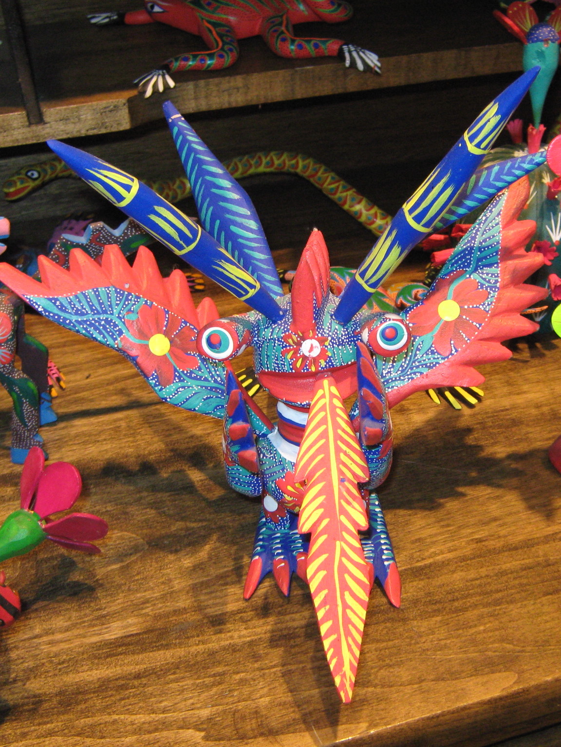 He’s an alebrije, a wood carving from Oaxaca. They’ve travelled from fever dreams to fine art galleries to little shops in San Diego Old Town. Naturally, since I bought him, I’m convinced that Leroy is an extra special example. Maybe it because he looks like a of Jim Woodring creature. Maybe it’s because his wings were on crooked. Maybe it’s because he seemed to smile right at me like he knew.