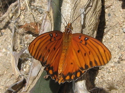 Yes, here are the inevitable bug pix, and a especially random batch, at that. But these are the bugs I saw wandering about outside those dangerous little shops. Butterflies dashing about at each other. (I only caught the one when it needed a breather.) A spider hanging from a huge web in the cool (too far overhead for a picture) and hiding under a leaf in the warmth. And a honeybee about to move on to the next flower.
