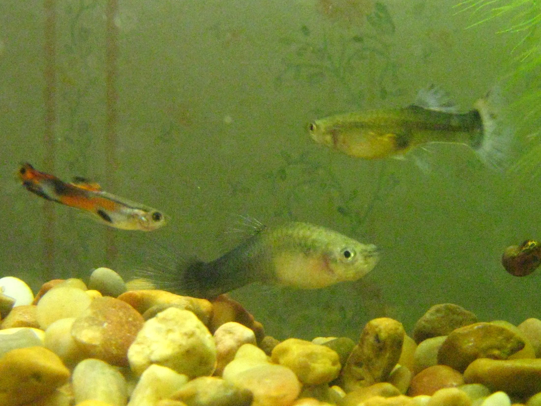 When I was a kid, I just saw guppies as pretty. Now I see them with different eyes. The males constantly harassing the females. The females constantly at some stage of pregnancy. The fry always in danger of being eaten. But they don’t all get eaten, and some of them are turning out quite pretty.
