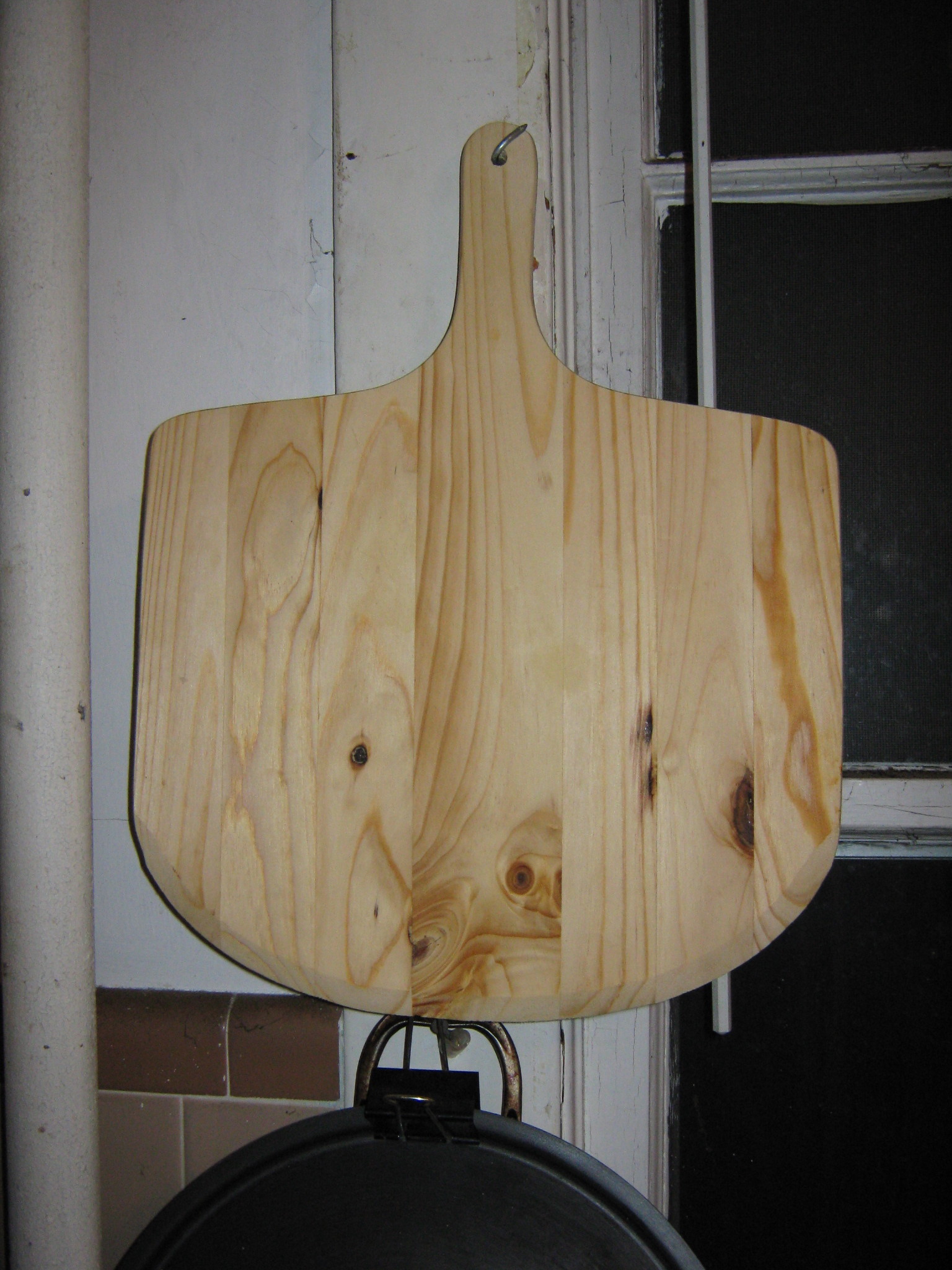 Use peel to transfer pizza onto heated stone. Again wish you had prepared the cheese beforehand because the dough is sticking to the pizza peel. Marvel at the rising steam. Wonder why the dough always seems to shrink at this point.