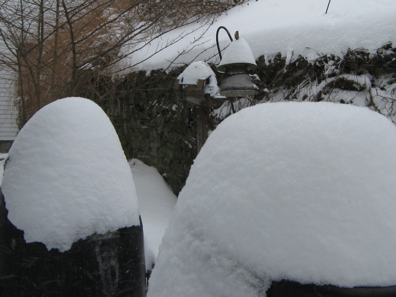 I like the high-browed heaps not just on the compost tumblers, but on top, and inside the feeders, though I feel bad for the birds trying to get the seed out.