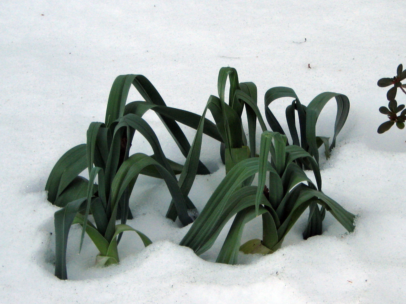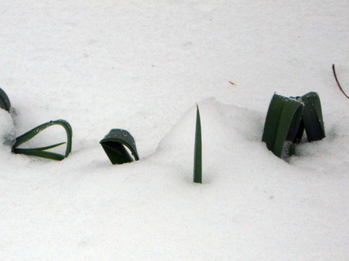 Last week, everything was covered in snow, but it didn’t take long for the snow to recede. The first sign was the tips of leaves poking through.