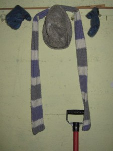 The shoveling mittens are drying.