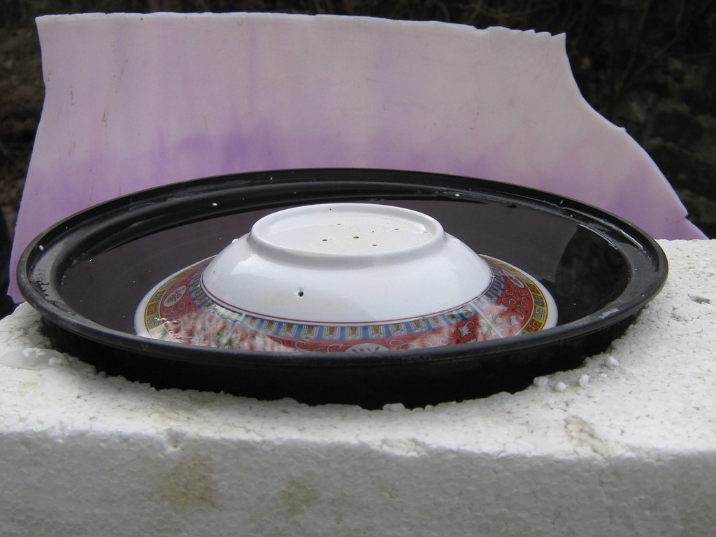 The frisbee I filled with water was a good start. The birds seemed to like it. But as I mentioned to my local Household Inventor, it needed improvement.