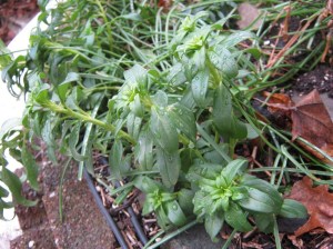 I know snapdragons can tough it out, even if they look frozen, but it startles me every time. This time, they got well covered in snow, and last night they got well washed by a good strong rain overnight. Now they look downright perky. I know snapdragons are tough, but are they crazy enough to flower?