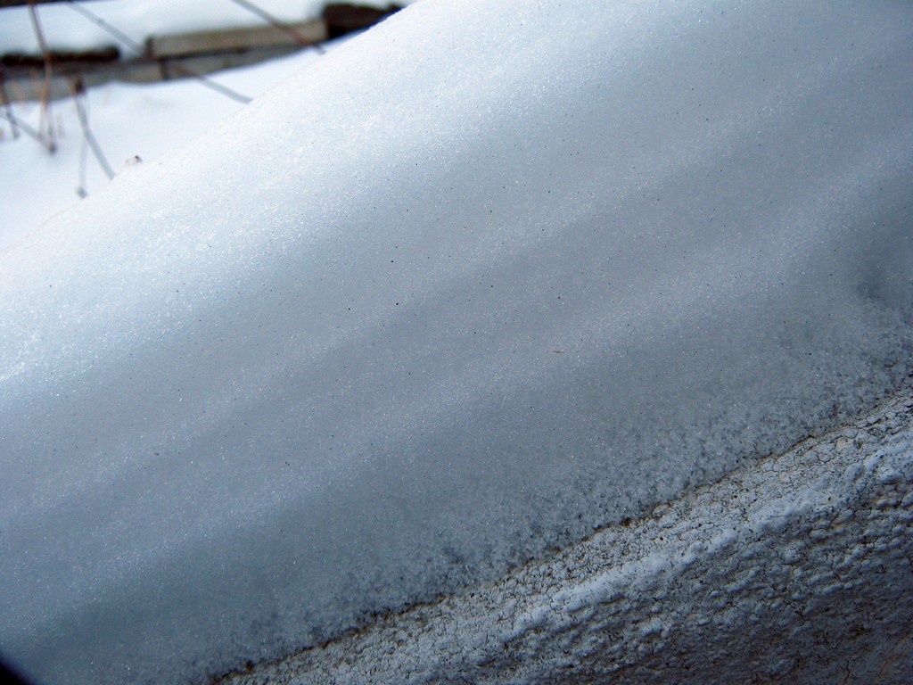 This cap piled on the water ice garden tub has real structure. In such cold, the snow never melts, so it stays dry and white. It changes in slower, subtler ways. Like on the shoveled out edges, layers are forming, as if it’s quietly settling into place. Maybe the snow is hoping to become a glacier.