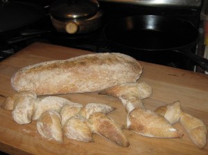 Posted on January 25, 2010January 25, 2010 by Pam Phillips Bread family Did the bread have babies? No, I’m just getting bolder. Still the same sourdough recipe I’m practicing, but this time divided up into smaller long loaves. The spiny ones are epis, which are baguettes snipped up to look neat. Or munged, depending on how you look at it. Share this: Click to email a link to a friend (Opens in new window) Email Click to share on Facebook (Opens in new window) Facebook Click to share on X (Opens in new window) X More Click to print (Opens in new window) Print Click to share on Reddit (Opens in new window) Reddit Click to share on LinkedIn (Opens in new window) LinkedIn Like Loading... Related