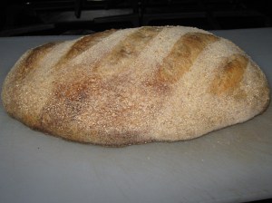 Flour, water, sourdough culture, and salt. That’s it. Only it turns out to be a recipe for a sticky mess of shapeless dough that only reluctantly rises. I’ve been making the same formula over and over, and slowly mastering it. Each time, I get a little better at handling the dough. This time I did the best job of forming a skin around the dough, but only at the cost of swearing, slamming, and fighting the dough. That’s one way to learn what not to do.