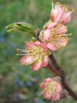 That includes the peach tree. It has been flowering for a couple weeks now, but as it started during the rains, the blossoms have taken a bit of a beating. So they’ve never been all that impressive, except for the fact that they’re still going. See?