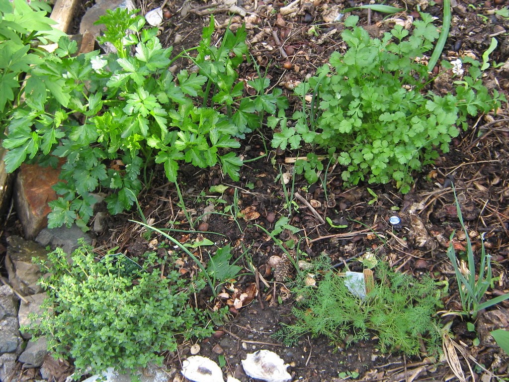 Posted on May 9, 2010May 9, 2010 by Pam Phillips Herb Garden Here’s the corner that I’ve designated as the herb garden for this year. From upper left to lower right, to upper right to lower left, it’s Parsley, Dill, Cilantro, and Thyme. And scallions in the middle, but they don’t scan. Share this: Click to email a link to a friend (Opens in new window) Email Click to share on Facebook (Opens in new window) Facebook Click to share on X (Opens in new window) X More Click to print (Opens in new window) Print Click to share on Reddit (Opens in new window) Reddit Click to share on LinkedIn (Opens in new window) LinkedIn Like Loading... Related