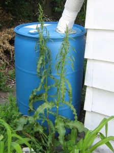 Like so many other perennial weeds, curly dock first reveals itself as a rosette, then rises up as a towering, magnificent bastard. Check out this one, already taller than my rain barrel. Supposedly it’s edible, but I never find them before they’ve already turned bitter. Slugs are more likely to eat it.