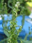 But the real warning sign comes when the flower stalks rise up. Lots of dense little non-descript flower pack together, waiting not for any bees or insects, but the wind. If you ignore that warning, they ripen to lots of dark brown seeds that scatter everywhere and lie in wait for years. So dig it up, getting as much of the dense orangey tap root as you can; it will resprout from the root.