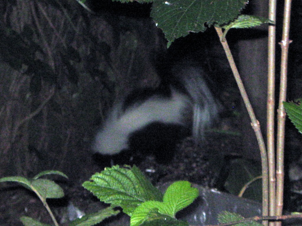The skunk jumped. I jumped. I could swear the skunk hissed. I did not hiss. I freaked out. “No, Kitty. Don’t go any nearer!”