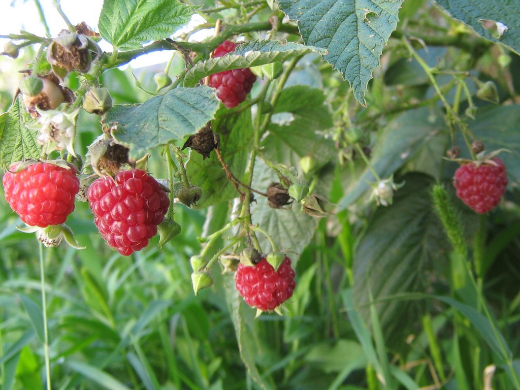 My Heritage raspberries have finally gotten their second wind. They’re classed as everbearing, but what that really means is they can offer a dual crop: one on last year’s growth in midsummer, and another on this year’s growth in fall. They’ve been in flower all August, but the inconstant dry weather seems to have held them back from fruiting. This stem is so tired, it’s leaning almost down into the grass for the picking.