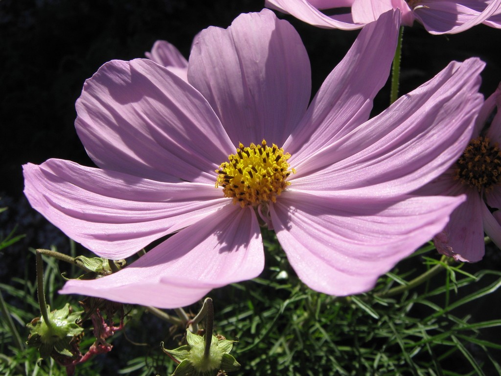 The cosmos patch is looking lovely lately. On these sunny days, under the clear sky and a low sun, the light seems to lie on the flowers like water in a saucer about to overfill. It’s a small patch, as only a couple of the plants survived, let alone thrived. But all this damp autumn weather has produced a nice spot of pinkness on the hill.