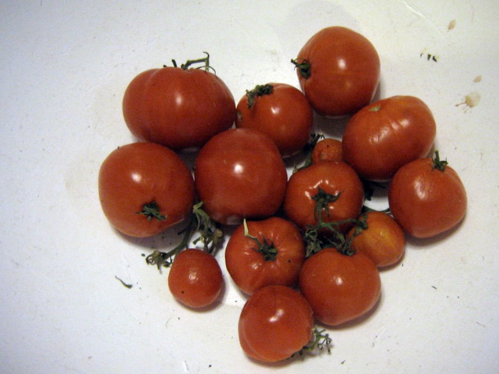 Amazing. All the tomatoes I picked turned red, down to the littlest one. I wonder if leaving them more exposed to light made a difference this year. Or maybe I picked them earlier. Who knows?