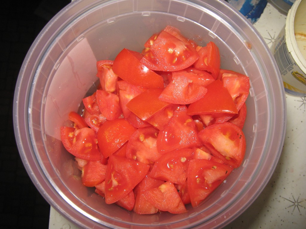 Tonight the tomatoes have met their fate: I chopped them up and made a big pot of arroz con pollo.