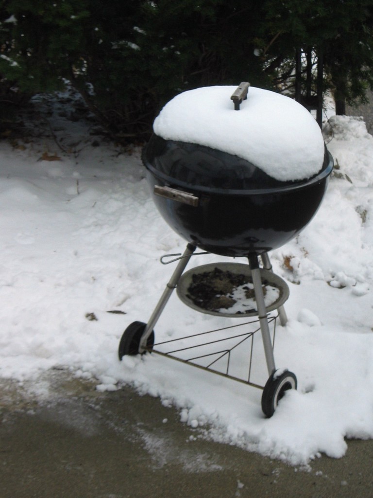 Here is my Weber kettle sitting on the patio, right where it’s been all summer, all autumn, all winter.