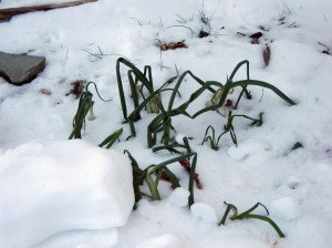 The storm was not very nice to my cold weather plants. The snapdragons are munged, the collards are covered, and the scallions are barely hanging in there, all scraggly on top of the snow. I’m sure the scallions will be fine, and the snapdragons will grow back. But I worry about the collards up on the hill, covered over with snow. No home-grown collards for New Year’s Day this year!