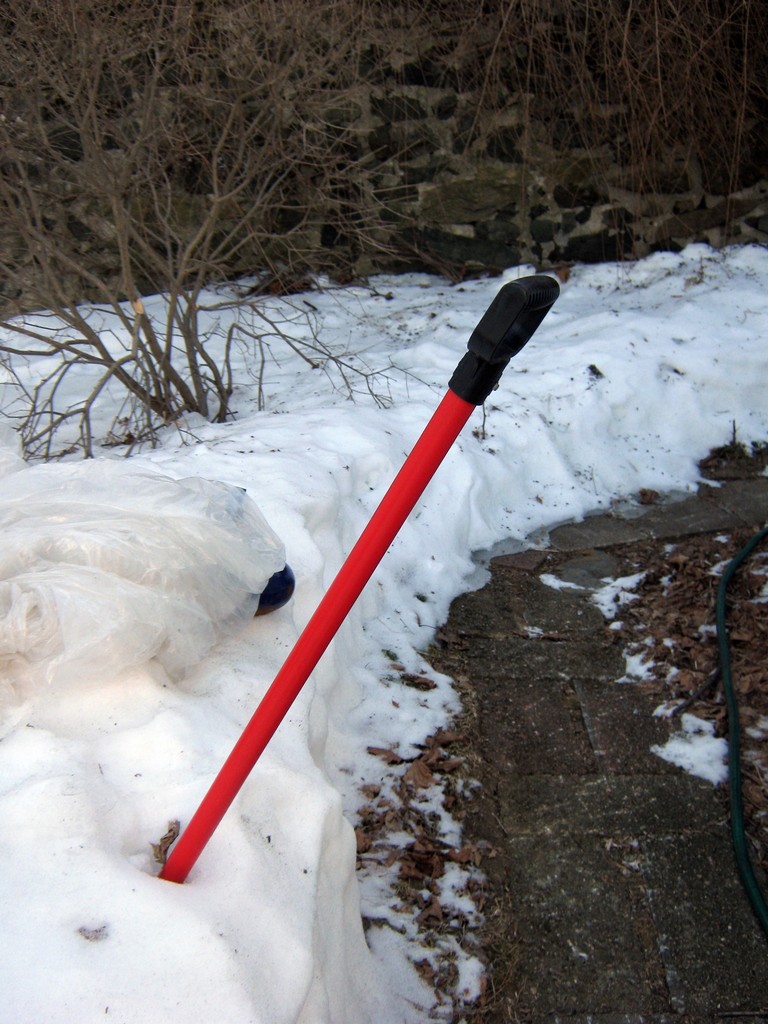 The shovel handle I stuck in the snow has turned into a kind of melt indicator. The overall level of snow has gone down a little, but the real indication is how far the handle has tilted. When it finally falls over, maybe then I’ll consider that winter might actually end around here.
