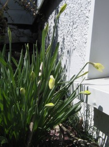 Posted on March 29, 2011March 29, 2011 by Pam Phillips Daffodils starting to open This clump of daffodils is starting to open the first flowers. I wonder if they’re really sure about it, though. One of them seems to be trying to sneak into the house. Share this: Click to email a link to a friend (Opens in new window) Email Click to share on Facebook (Opens in new window) Facebook Click to share on X (Opens in new window) X More Click to print (Opens in new window) Print Click to share on Reddit (Opens in new window) Reddit Click to share on LinkedIn (Opens in new window) LinkedIn Like Loading... Related
