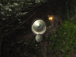 The first annual sighting of the four legged aliens commonly known as “raccoons” occurred last night between 8:00 and 9:00 p.m. In this blurry photo, the said alien is visible beyond the broken pieces of its flying saucer. The witness who provided the photo said that it made piping sounds, as if it was trying to alert its mother ship.