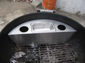Just in time for the Fourth, I got a new toy. It’s a Smokenator, a metal baffle that fits into your Weber kettle grill and turns it into a smoker. The grill works great for steaks, but sometimes I want to make ribs or pulled pork, and that means barbeque smoke.