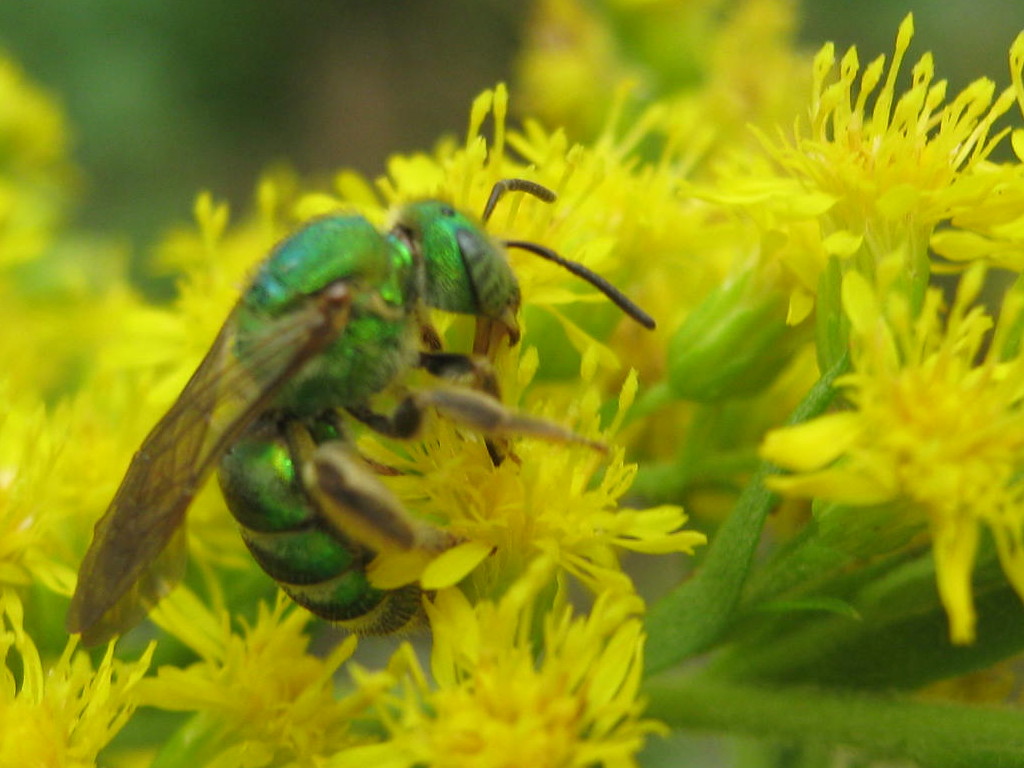 Posted on August 16, 2011January 11, 2014 by Pam Phillips All green bee in golden flowers Never mind the rain, here’s a green bee, Clad from head to tail in a green sheen. And here’s where I give up on Finding a rhyme for Agapostemon. Share this: Click to email a link to a friend (Opens in new window) Email Click to share on Facebook (Opens in new window) Facebook Click to share on X (Opens in new window) X More Click to print (Opens in new window) Print Click to share on Reddit (Opens in new window) Reddit Click to share on LinkedIn (Opens in new window) LinkedIn Like Loading... Related