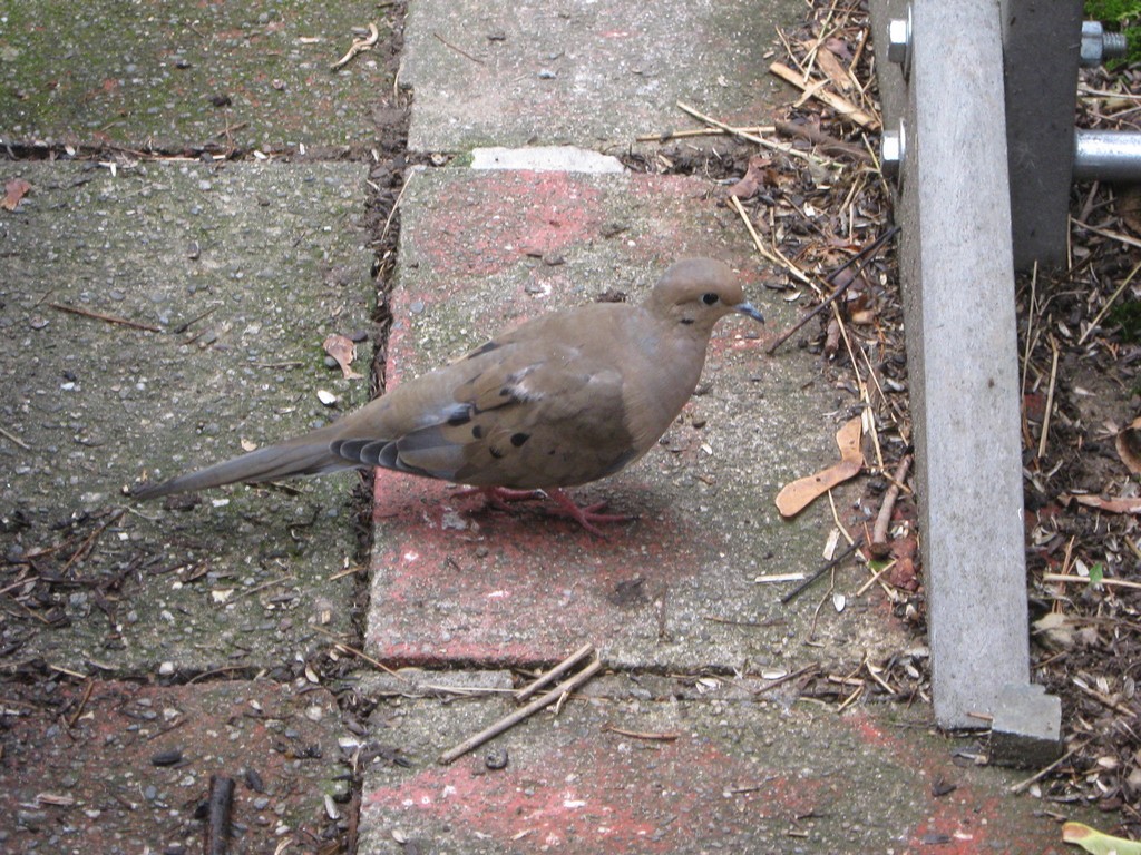 When I went out in the yard, I was impressed by how boldly this Mourning dove walked right up to me. It’s even bolder than it’s cousin the pigeon. After all, it knows I’m not a cat. Maybe it thinks I’ll be intimidated by its feathered dinosaur ancestors. But most likely, it knows I’m the one who feeds the feeders and it’s waiting for me to get out of its way.