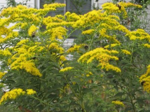 I wish I could get the camera to convey the abundance of bumblebees on the goldenrod today. The sun is back and it’s found a perky stand of goldenrod in full color. Lots of bumblebees have found it too. Usually I could spot at least six or seven on it at a time. In this, the best of a blurry lot of pictures, you might see six or seven bumbles, too.