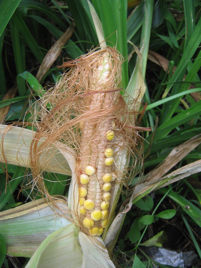 The corn the squirrels accidentally planted actually set some kernels. Sure, it’s an unlovely gap-toothed grin of corn, but who cares what it looks like? It’s corn!