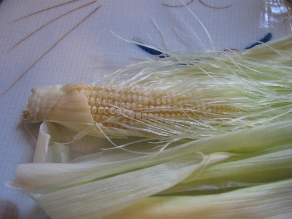 I did not grow this corn. Too cute. Neither did the squirrels grow this corn. Oh, no. This corn is so professionally grown, it formed as a slender extra ear clasped within the husks of a full-sized ear of corn we had for dinner. The kernels are so fine, so perfect, so fully formed, and yet too tiny for anything but the admiration of a Cheshire cat smile.