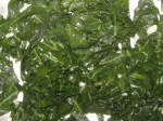 Add greens. Sprinkle on salt. Using tongs, turn them over in the pan to coat with oil and garlic. Cover and cook just until bright green, about three minutes.