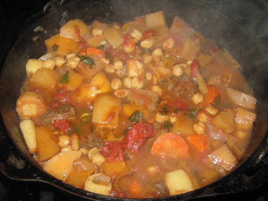 It doesn’t have to be snowing to be blowing wet and nasty weather out there. Today was a good day to pull together the root vegetables from the farmers markets and make one of my favorite stews, Shurpa Lagman. It’s kind of hard to go wrong when you start out with a little beef, and add onion, turnips, rutabaga, parsnips and carrots. Something special happens with the flavors of tomato, cumin, chili flakes, and coriander meld. What I love best about this dish are the nutty globes of chickpeas generously dotting the bowl. So good, and so good for you.