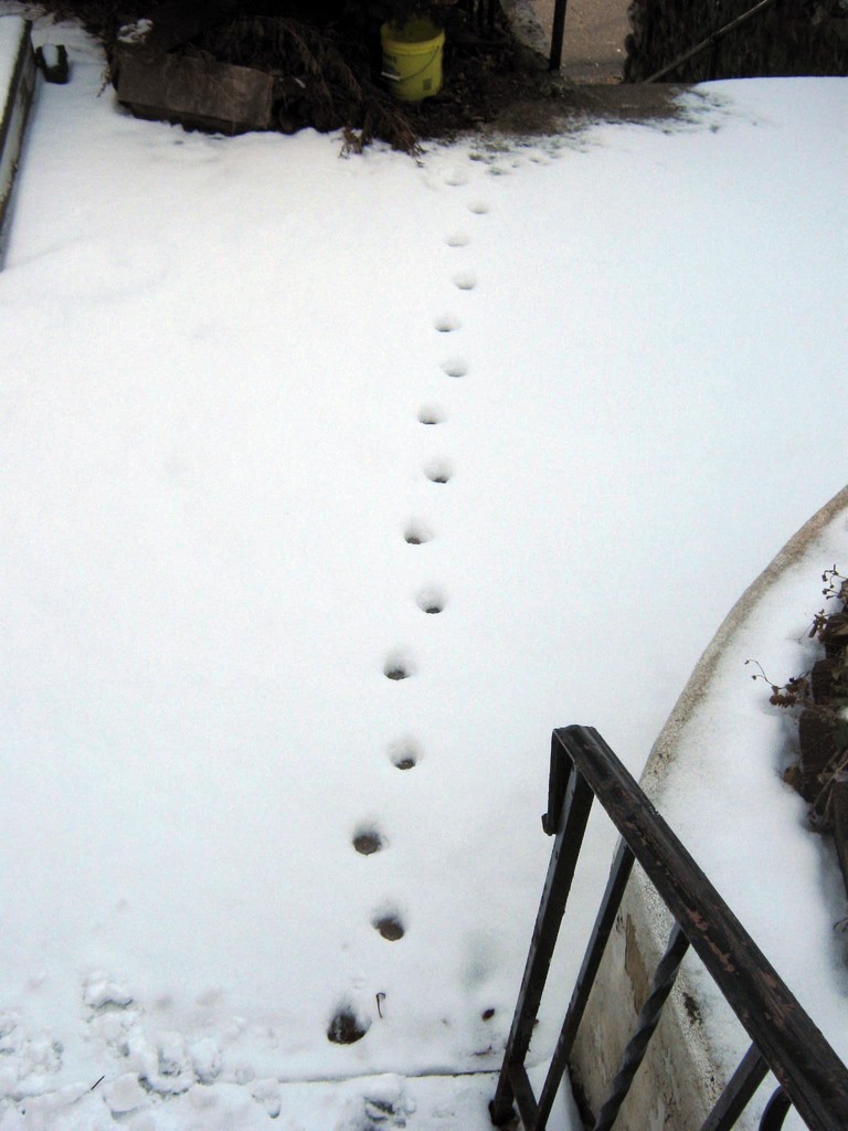 While it lay on the ground, the cat made his rounds, leaving a steady trail.
