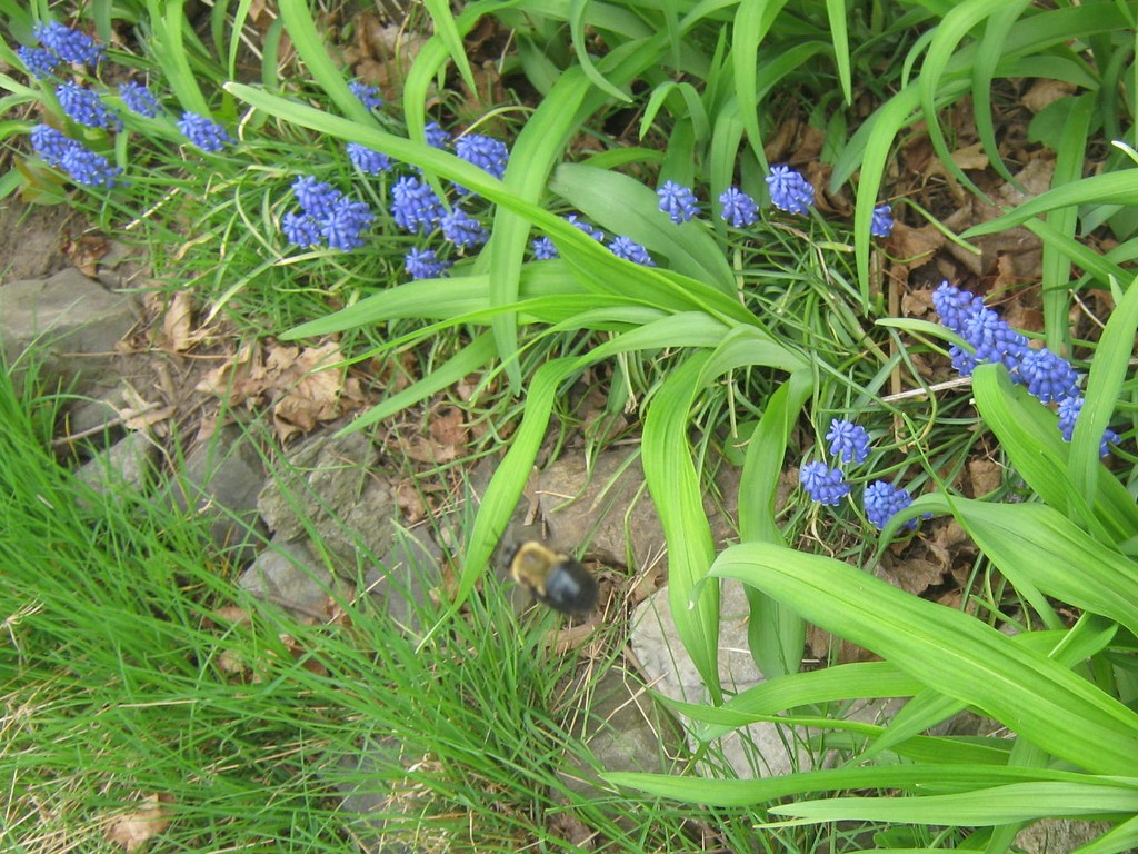 Right about when the bumblebees show up, the Carpenter bees come out too. Bumblebees are placid, fuzzy fellows that take no notice of you. While they look like extra large bumblebee, the Eastern Carpenter Bees have a shiny tail, and the males will get in your face, and tell you in no uncertain terms to get out of their territory. You can tell the males by the way they patrol a nice patch of flowers, and by the pale patch on their face. For all that sass, male bees are all show and no stinger. (What they have instead of a stinger is deployed for the lady bees only.)